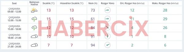 Yağış saat 18.00 prestijiyle kenti terk edecek. Bu saatten itibaren ise sıcaklık 7 dereceye kadar düşecek.