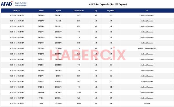 13 Kasım 2025 Son Sarsıntılar Listesi: Sarsıntı mi Oldu?