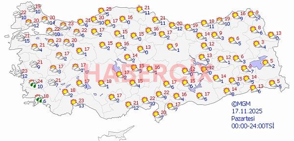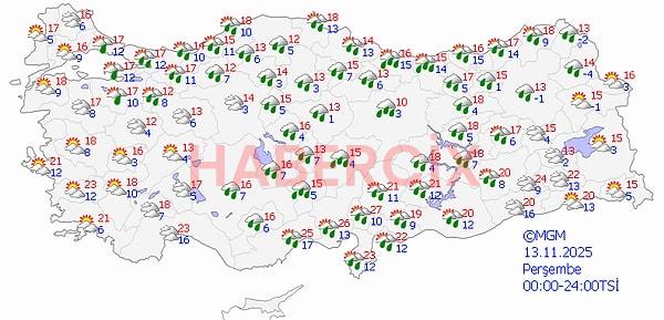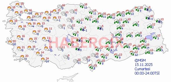 Meteoroloji Genel Müdürlüğü’nün yayınladığı son hava varsayım raporuna nazaran Türkiye’de bugün birçok bölgede yağış gözükecek. Yağışların Niğde, Kayseri, Sivas, Samsun, Ordu ve Giresun etraflarında yer yer kuvvetli olması bekleniyor. Bursa, İstanbul, Adana, Antalya, Hatay, Çankırı, Kayseri, Bolu, Düzce, Sinop, Zonguldak, Amasya, Rize, Samsun, Trabzon, Erzurum, Kars, Malatya, Diyarbakır ve Antep’te ise yer yer yağış geçişleri olacak. Karadeniz ve Doğu Anadolu’nun yükseklerinde kar yağışı bekleniyor. Hava sıcaklıkları iç bölgelerde 4 dereye kadar düşüş gösterecek. Yağışlar yarın ise yurdun batı bölgeleri hariç öteki bölgelerinde tesirli olacak.