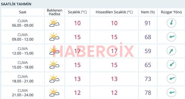 Ülke genelinde düşmeye devam eden hava sıcaklığı İstanbul’da bugün 15 derece olacak. En düşük hava sıcaklığının 10 derece olması beklenen İstanbul öğlen saatlerinde 17 dereceye kadar yükselecek.