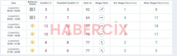 Saat 12.00 prestijiyle kent genelindeki puslu hava dağılacak. Günün en yüksek sıcaklığı 12 derece olacak. Saat 21.00-24.00 ortası ise hava sıcaklığı 6 dereceye kadar düşecek. Fakat dikkat! Gündüz güneşine aldanmayın! Hava sıcaklığı beklenenin altında seyredecek. Bu nedenle yanınızda mont, ceket bulundurmanızda yarar var!