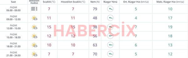 Öğleden sonra sıcaklık tekrar 13°C seviyesine düşecek. Bu saatlerde nem oranının %80’lere çıkması nedeniyle hava olduğundan biraz daha serin hissedilebilir.