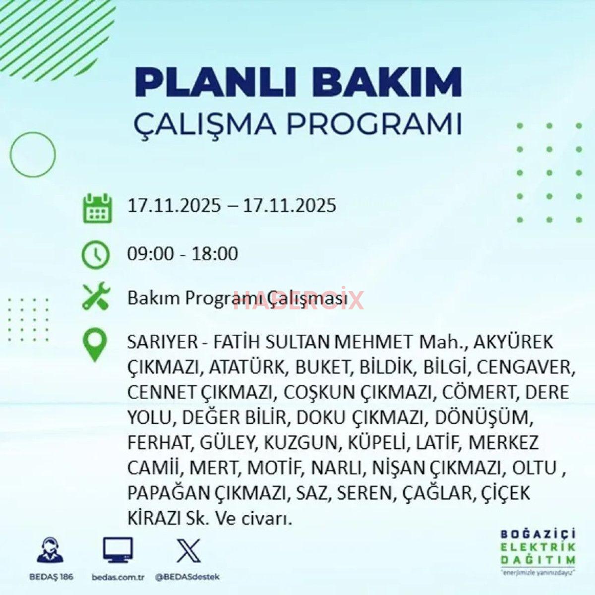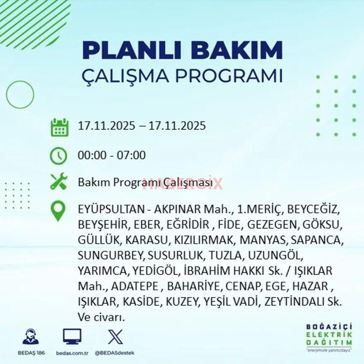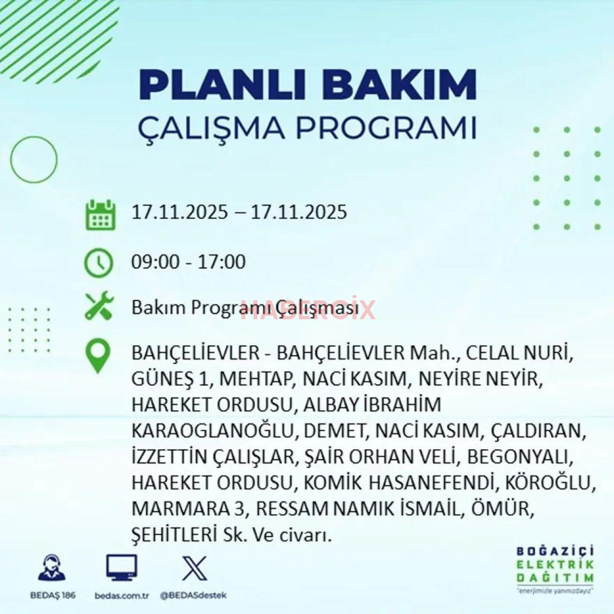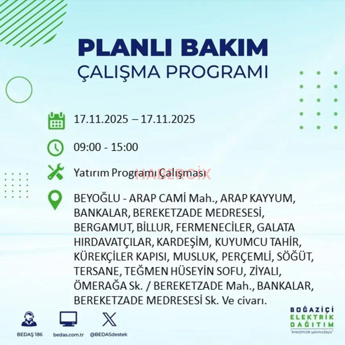 17 KASIM 2025 İSTANBUL ELEKTRİK KESİNTİLERİ