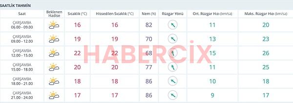 19 Kasım Çarşamba İzmir Saat Saat Hava Durumu 👇