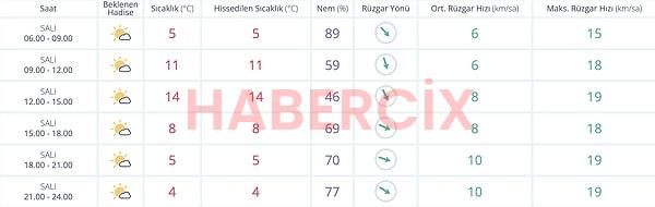 Meteoroloji bilgilerine nazaran kentte gün boyunca yağış beklenmiyor; günün en düşük sıcaklığı ise gece ve sabaha karşı 4–5 derece civarında seyredecek.
