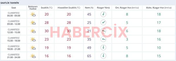 Hava sıcaklıklarında ise evvelki günlere nazaran değerli bir değişiklik öngörülmüyor. Cumartesi günü içerisinde bilhassa öğlen saatlerinde Adana’da hava sıcaklıkları 30 dereceyi bulacak. Gece saatlerinde ise sıcaklıklar 16 dereceye kadar düşebilir.