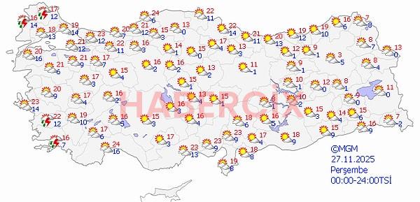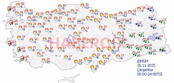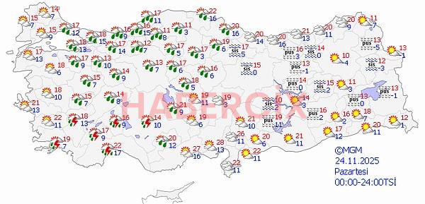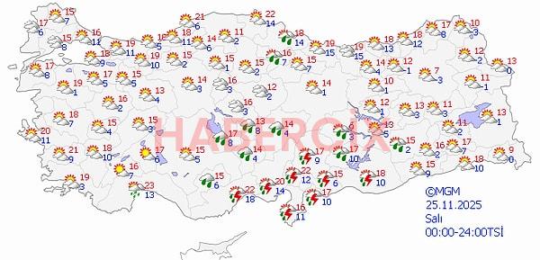 Meteoroloji Genel Müdürlüğü’nün yayınladığı son hava durumu varsayım raporuna nazaran yağışlar yurdun batı bölgesinde tekrar tesirli olmaya başlayacak. Hava sıcaklıkları mevsim normallerinin üzerinde seyrederken, yağışların Çanakkale ve Balıkesir etraflarında kuvvetli olması bekleniyor. Yağışlı hava yarın (24 Kasım) yurt genelinde tesirli olmaya başlayacak.