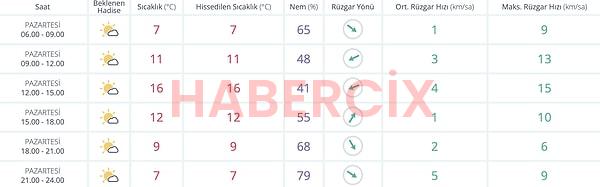 Öğleden sonra modüllü bulutlu, vakit zaman güneşli hava tesirini sürdürürken, akşam ve geceye yanlışsız sıcaklık yine 7 dereceye kadar düşerek serinleyecek. Rüzgar gün boyunca hafif esecek; güneşle bulutun vakit zaman yer değiştirdiği, yağışsız bir hava bekleniyor.
