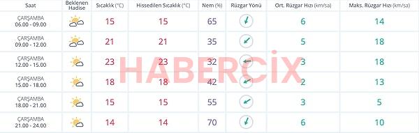 Meteoroloji bilgilerine nazaran kentte gün boyunca yağış beklenmiyor; günün en düşük sıcaklığı gece ve sabaha karşı 14–15 derece civarında seyredecek.