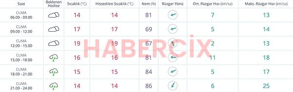 Mevsim normalleri üzerinde seyreden hava sıcaklıklarının yağışlı havanın tesiriyle Cumartesi gününden itibaren 3 ila 5°C düşerek mevsim normalleri civarına gerilemesi beklenmektedir. Rüzgârın ise güney istikametlerden hafif, vakit zaman orta kuvvette eseceği değerlendirilmiştir. Sel, su baskını, yıldırım, yağış anında kuvvetli rüzgar, ulaşımda aksamalar üzere aksiliklere karşı dikkatli ve önlemli olunmalıdır.’