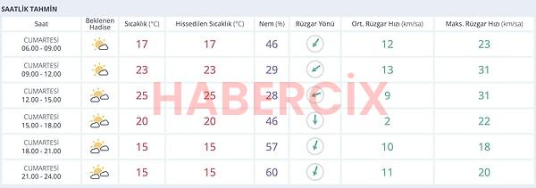 Adana’da ise bugün hava sıcaklığı öğlen saatlerinden itibaren 25 dereceye kadar ulaşırken, kentin genelinde modüllü ve çok bulutlu bir gün yaşanacak. Gece saatlerinde sağanak ve gök gürültülü sağanak yağışlar bekleniyor. Mersin, Adana, Osmaniye ve Hatay etraflarında gece saatlerinden itibaren başlayan, mahallî olmak üzere sağanak ve yer yer gök gürültülü sağanak yağışların Pazar günü de devam edeceği öngörülüyor.