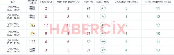 Saat 15.00-18.00 ortası sıcaklık 9 derece