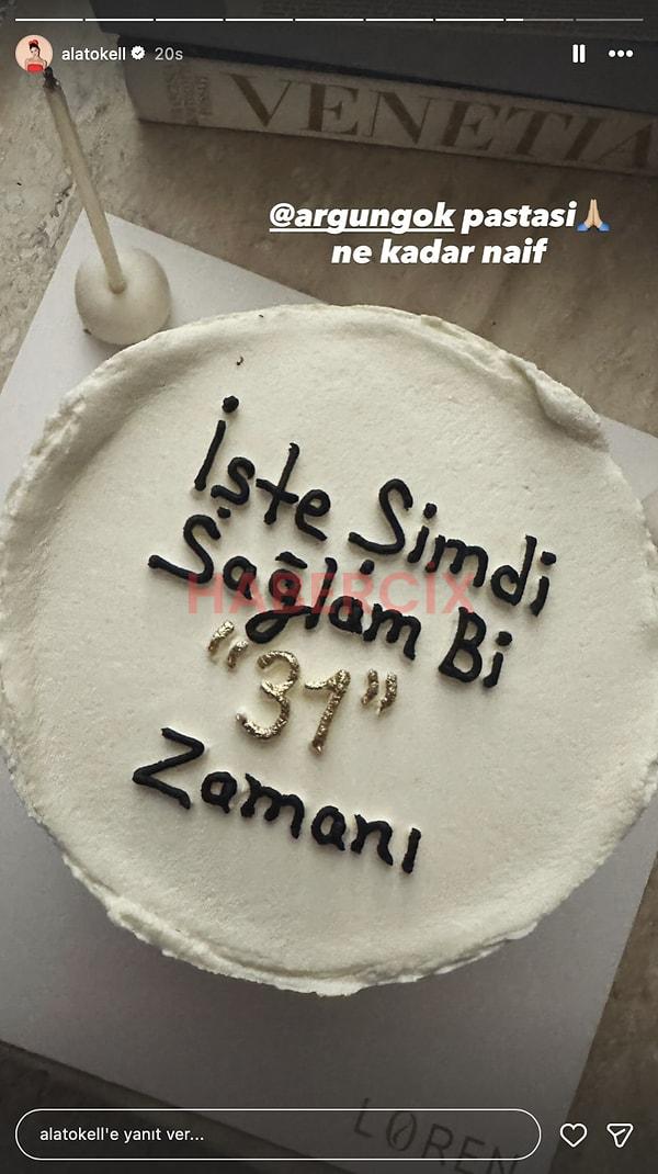 Geçtiğimiz saatlerde evine yağan pastaları tek tek paylaşan Ala Tokel’in bir pastası daha dikkat çekti. 31 yaşına giren Ala Tokel’e “esprili” bir pasta geldi… 😂