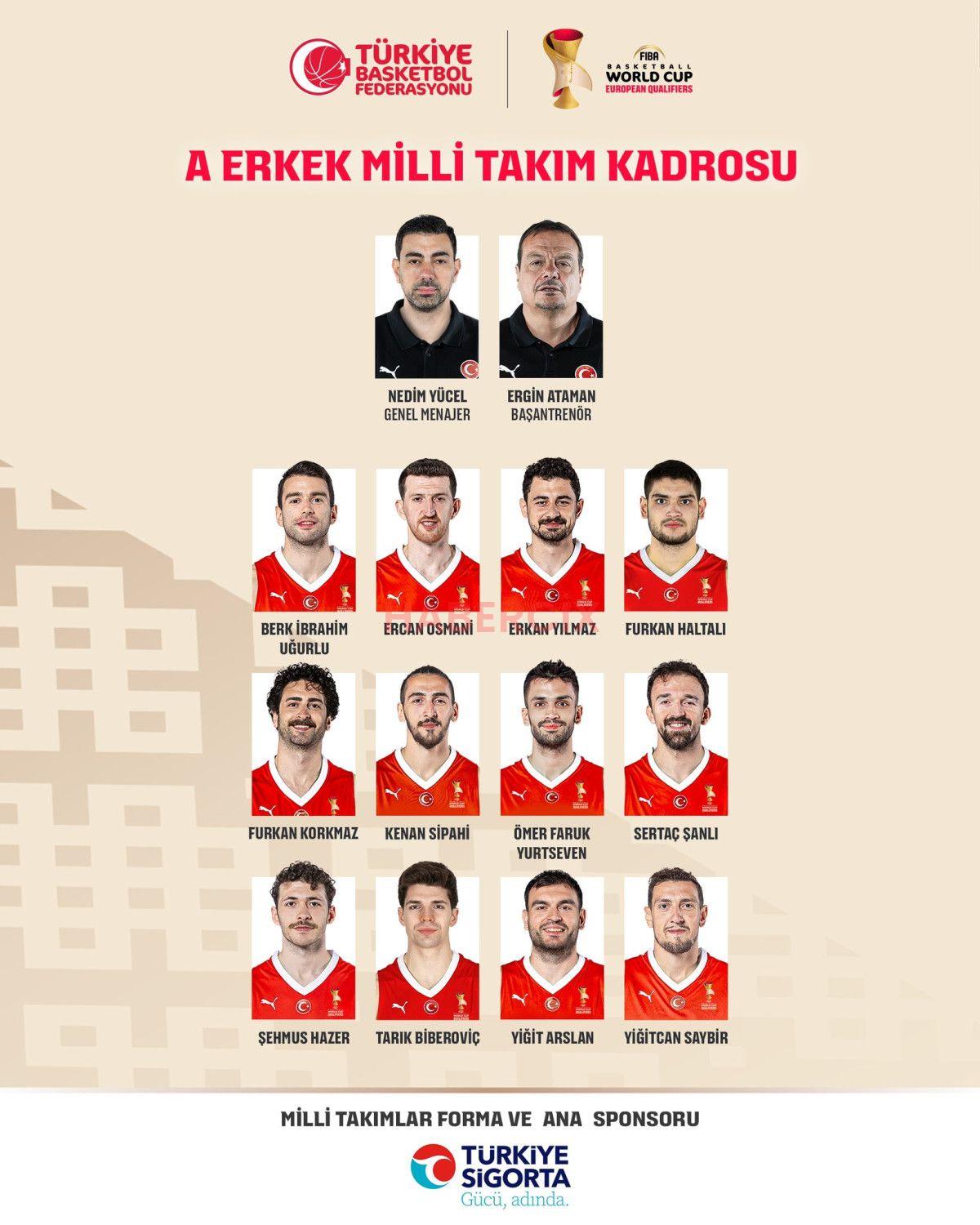 A Milli Erkek Basketbol Takımı’nın FIBA 2027 Dünya Kupası Elemeleri’nde bu akşam İsviçre ile oynayacağı müsabakanın 12 kişilik kadrosu açıklandı.