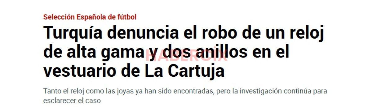 Marca’nın haberine nazaran; salı günü oynanan İspanya-Türkiye maçında A Ulusal Ekibimizin soyunma odasından yaklaşık 200 bin euro kıymetinde 1 saat ve 60 bin euro bedelindeki 2 yüzük çalındı.