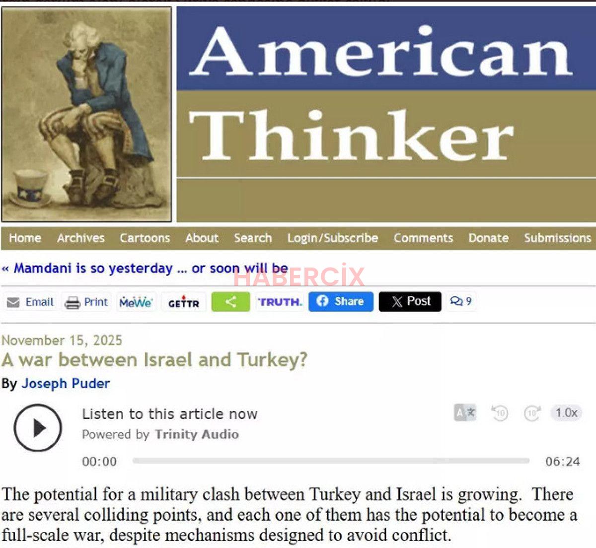 ABD merkezli, muhafazakar yayın siyasetiyle tanınan American Thinker dergisi, Türkiye ile İsrail ortasındaki askeri tansiyonun artabileceğine dair bir tahlil yayımladı.