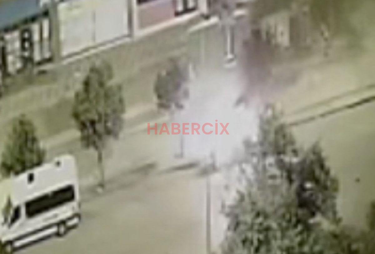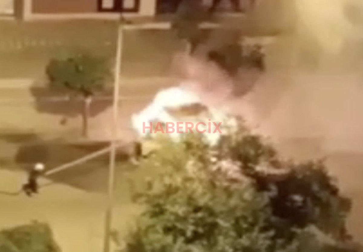 Kamyonetin alev aldığı anlar, güvenlik kamerasına yansıdı.