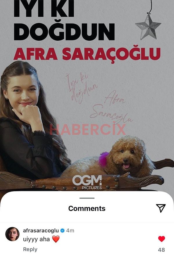 A.B.İ. dizisiyle karşımıza çıkmaya hazırlanan Afra Saraçoğlu da doğum günü mesajına verdiği cevapla “Acaba o da mı izliyor?” diye düşündürmüştü.
