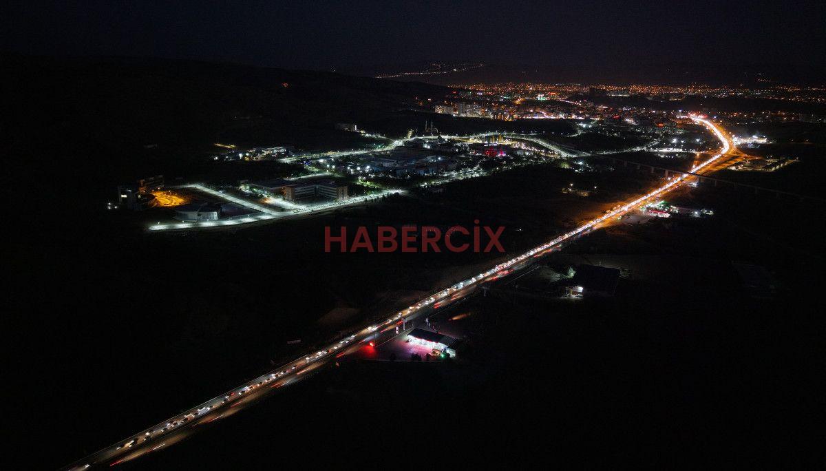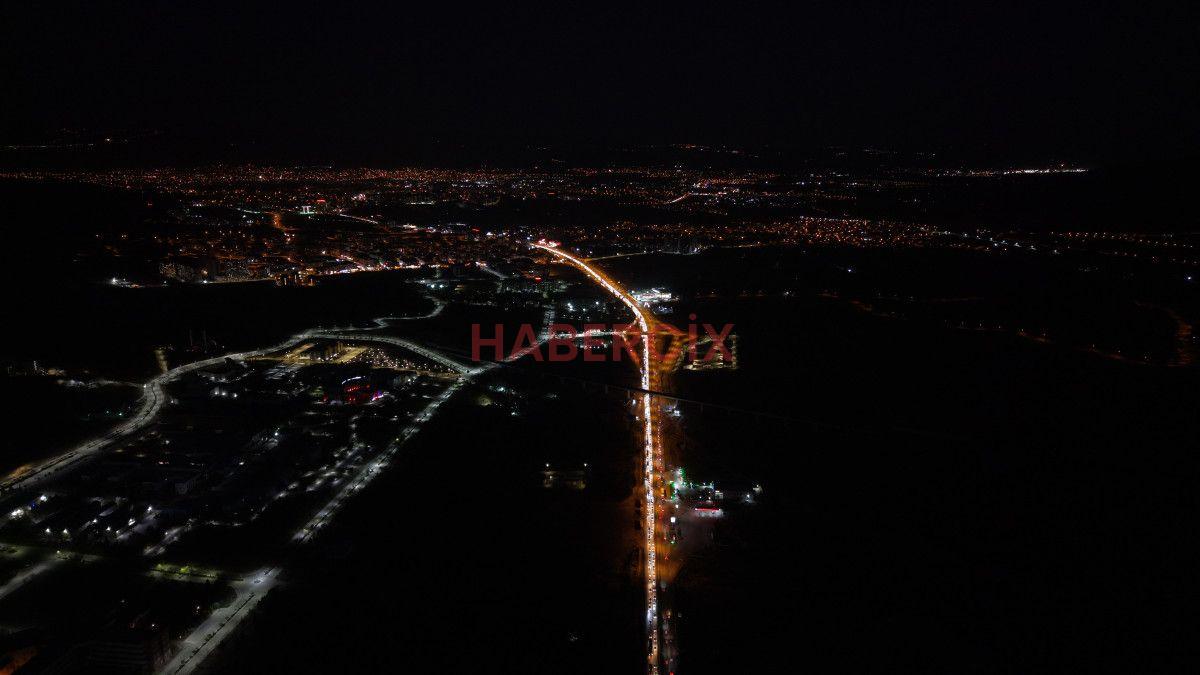 Dönüş trafiğinin en fazla hissedildiği Ankara istikametinin bazı kesimlerinde trafik akışındaki yavaşlama havadan kaydedildi.