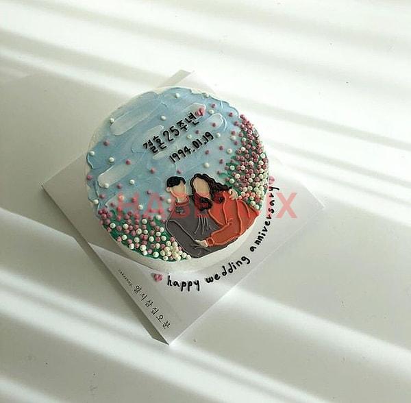 Çöp adamdan hallice resmetmek de çok tatlı olabilir. Birkaç çizgiyle hem kendini hem de partnerini pastanın üzerine çizebilirsin. Açıkçası çok tatlı ve güzel duruyor. Hem de hiçbir pastaya benzemiyor!