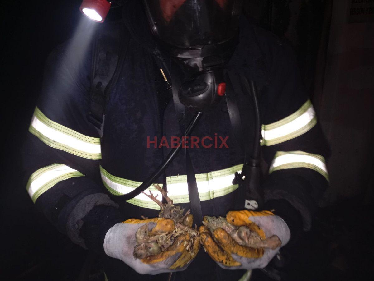 Soğutma çalışmaları sürerken yapılan incelemede birinci belirlemelere nazaran yaklaşık 5 bin civcivin telef olduğu belirlendi.