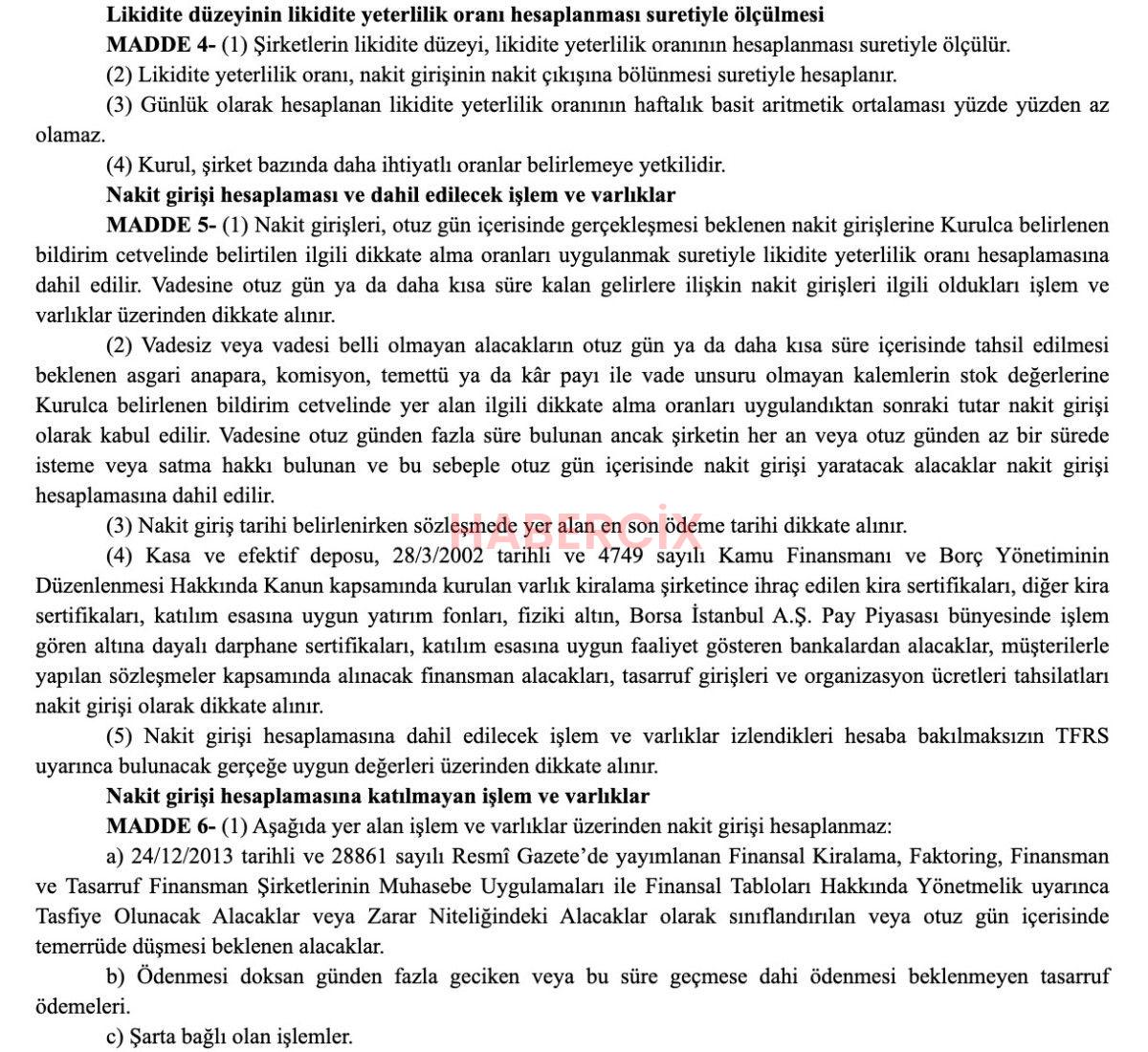 Yeni bildiriye nazaran şirketler, likidite oranlarını haftalık bazda BDDK’ya raporlayacak.