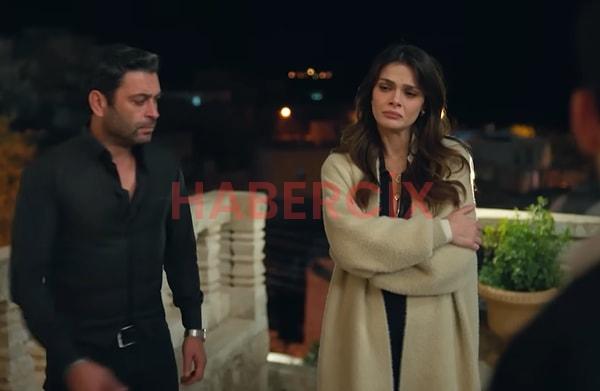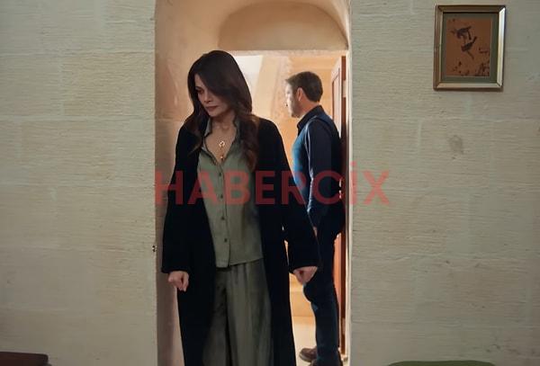 Bu sahnedeki kombinde uzun triko hırkası yine Olcay markasından, içindeki yeşil kadife takımı ise Beymen Collection’dan. Sahnedeki duruşunu hem şık hem rahat gösteren harika bir kombin olmuş.
