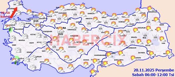 Meteoroloji, 20 Kasım raporunu paylaştı. ‘Bugün hava nasıl?’, ‘Bugün yağmur var mı?’ sorusunun karşılığı böylelikle muhakkak olmuş oldu. 20 Kasım günü ülke genelinde güneşli ve sıcak hava tesirli olacak. Meteoroloji’nden yapılan ikazda ‘Ülkemizin batı kesitlerinin modüllü yer yer çok bulutlu, Edremit Körfezi ile Muğla’nın batı etraflarının hafif olmak üzere sağanak yağışlı, öteki yerlerin modüllü ve az bulutlu geçeceği iddia ediliyor. Sabah ve gece saatlerinde iç ve doğu bölgelerde pus ve yer yer sis bekleniyor’ tabirleri yer aldı.
