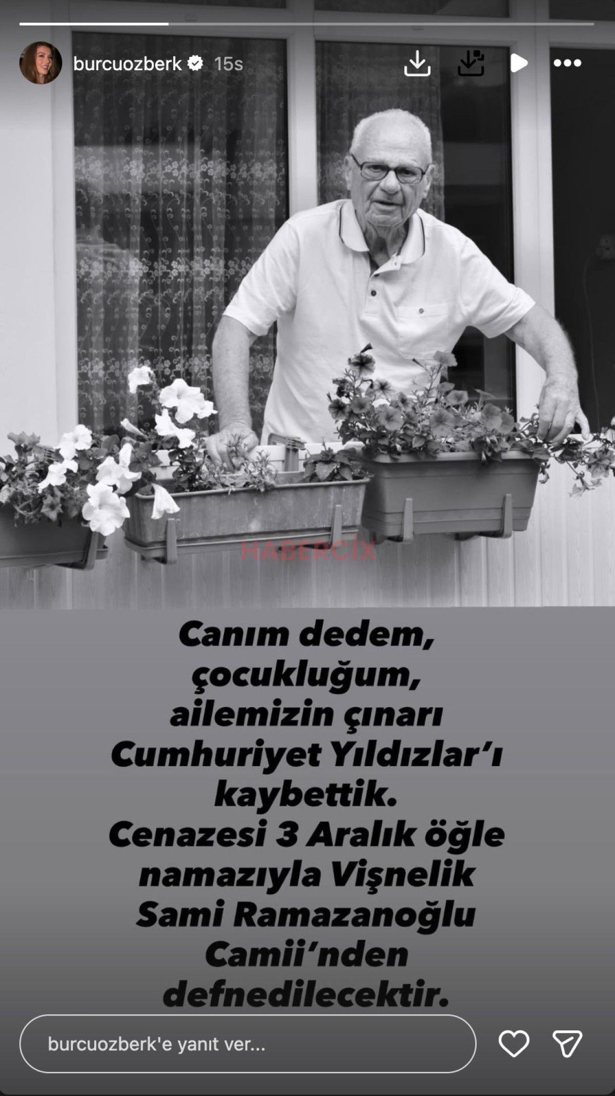 35 yaşındaki Özberk, Instagram hesabından yayımladığı iletiyle, dedesi Cumhuriyet Yıldızlar’ın vefat ettiğini duyurdu.