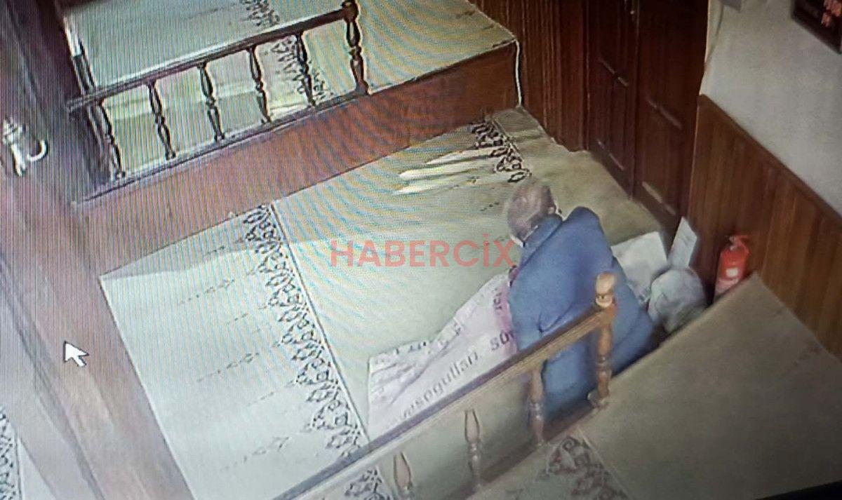 Cami vazifelisi Mikail Aydın, ikindi namazı için geldiğinde sadaka kutusunun yerinde olmadığını fark edince kamera kayıtlarını inceledi.