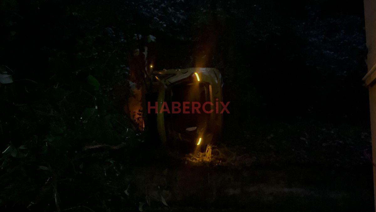 Nükhet F.’nin gaza basmasıyla geri geri gitmeye başlayan otomobil, demir korkulukları aşıp, yaklaşık 7 metre yükseklikten ağaçlık alana düştü.
