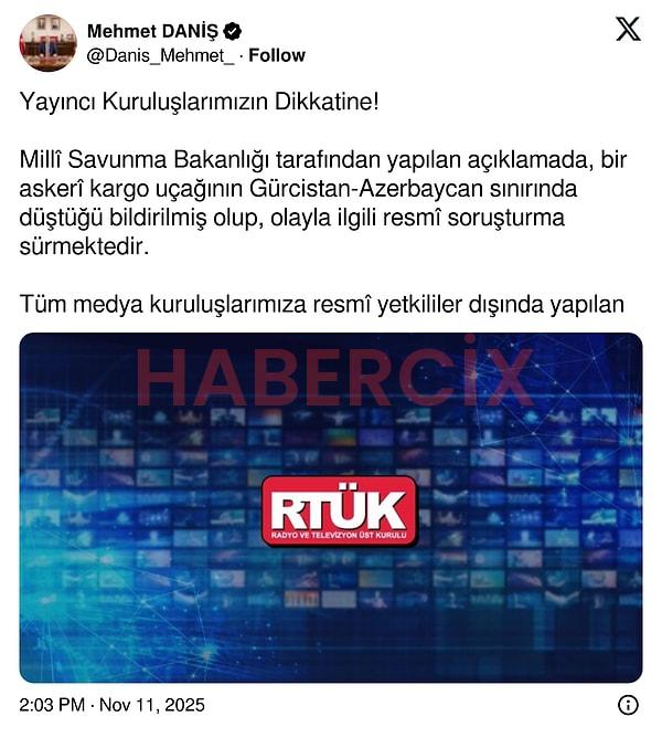 RTÜK Başkanı Mehmet Daniş’ten düşen uçakla ilgili uyarı