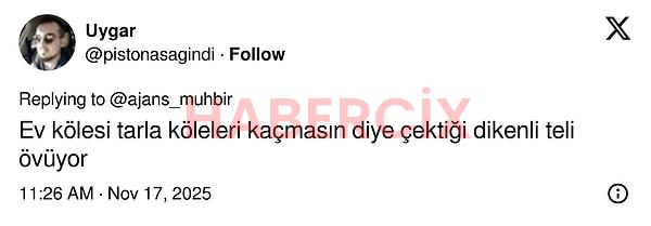 ‘Ev kölesi, tarla köleleri kaçmasın diye çektiği dikenli teli övüyor.‘