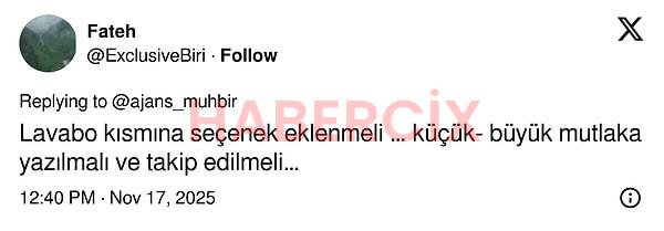 ‘Lavabo kısmına seçenek eklenmeli… Küçük- büyük mutlaka yazılmalı ve takip edilmeli.‘