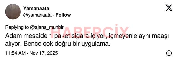 ‘Adam mesaide 1 paket sigara içiyor, içmeyenle aynı maaşı alıyor. Bence çok doğru bir uygulama.‘