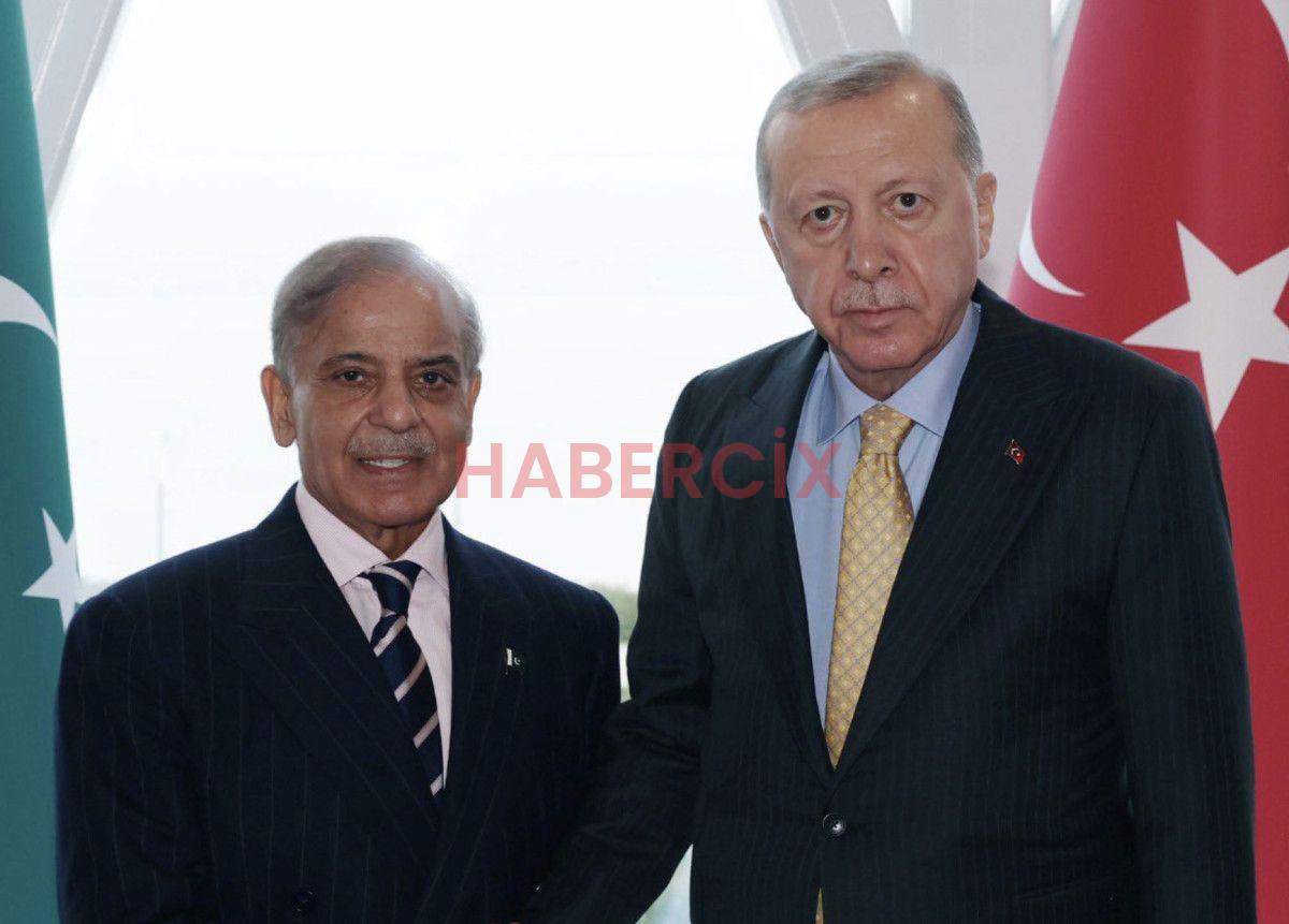 Cumhurbaşkanı Erdoğan, burada ayrıca Pakistan Başbakanı Şahbaz Şerif ile bir araya geldi.