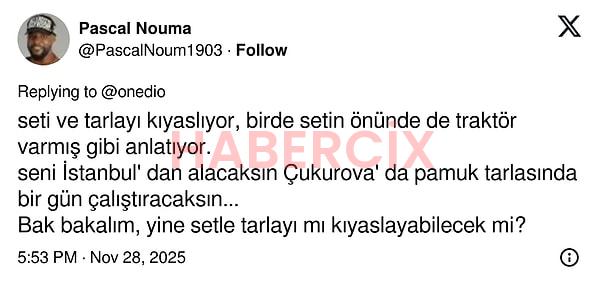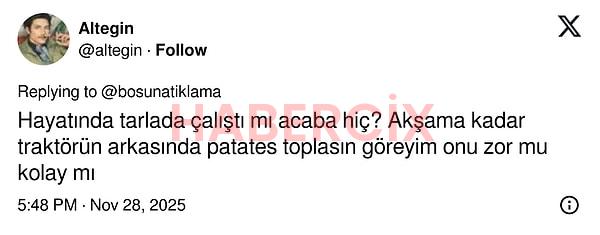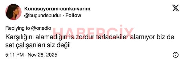Bahar dizisinin sosyal medya hesabında yayınlanan bir videoda yer alan Demet Evgar, sette çalışmanın zorluklarını açıklarken şaşırtan bir benzetmede bulundu. Sette çalışmakla tarlada pamuk toplamayı bir tutan açıklamalarda bulunan Demet Evgar, ‘İnsanın hayatında en çok yorulduğu iş, bir set işçiliği bir de tarlada çalışmaktır.’ diyerek sosyal medyayı ayağa kaldırdı. Demet Evgar’ın bu sözü sonrasında tepkiler gecikmedi.