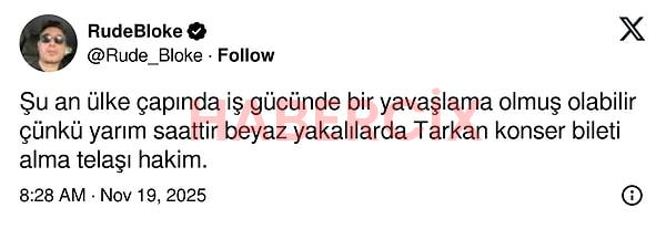 Ocak 2026’da gerçekleşecek konser serisine ait biletler ise bugün saat 11.00’de satışa sunuldu. Ancak Tarkan hayranları bu kadar talep olacağına kendileri bile inanamadı. Önce Biletix çöktü, ardından yüz bine varan sıranın oluştuğu kuyruklar ortaya çıktı. İçlerinde daha ekonomik ve daha pahalı olmak üzere pek çok kategorinin bulunduğu biletler birkaç saat içinde tamamen tükendi.
