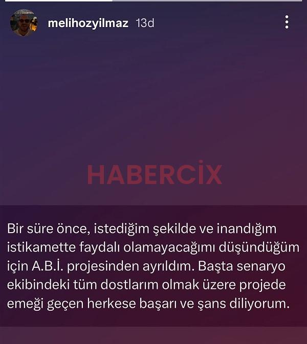 Melih Özyılmaz, Instagram hesabından yaptığı paylaşımda A.B.İ.’den ayrıldığını duyurdu.