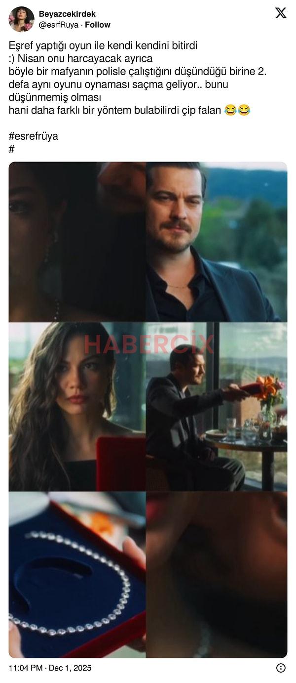 Kanal D ekranlarının sevilen dizisi Eşref Düş, yayın hayatına tüm heyecanıyla devam ediyor. Son kısımlarda Eşref ve Nisan’ın ortası açılmıştı. İzleyiciler olarak barışmalarını dört gözle beklerken 24. kısım fragmanındaki bir ayrıntı sonlarımızı hoplattı. Nisan’ın muhbir olduğunu düşünen Eşref, ona bir kolye armağan edince izleyiciler vaktinde Çiğdem’e de ikram ettiği dinleme cihazlı kolyeyi anımsadı. Nisan’a da tıpkı numarayı yapmış olması reaksiyonlara neden oldu.