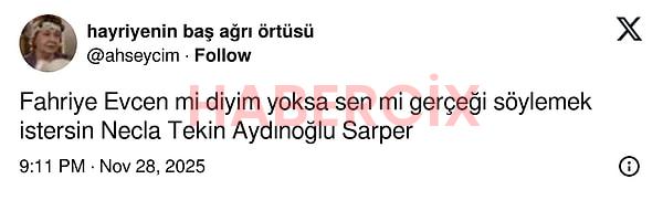 Bu sahne, Fahriye Evcen’in kariyerinde önemli bir yer tutan Yaprak Dökümü dizisini ve oradaki Necla karakterini de yeniden gündeme taşıdı. Dizide Necla Tekin rolüyle geniş kitlelere ulaşan Evcen, zaten son yıllarda paylaşımlarında sık sık “Tam Yaprak Dökümü’ndeki Necla olmuşsun” yorumları alıyordu; bu videoya da benzer yorumlar gecikmedi…