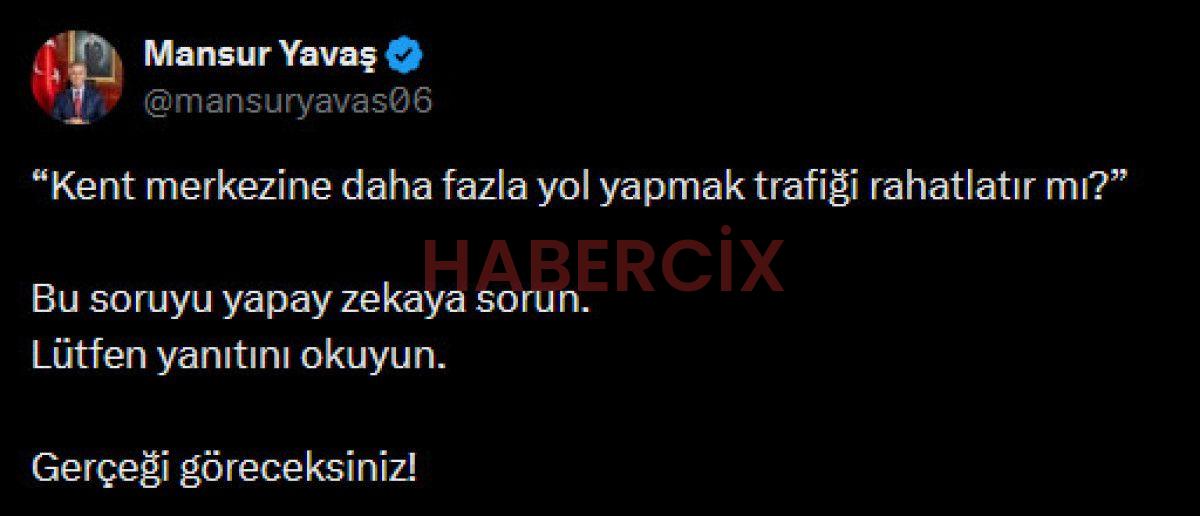 MANSUR YAVAŞ’TAN ‘YAPAY ZEKAYA SORUN’ PAYLAŞIMI