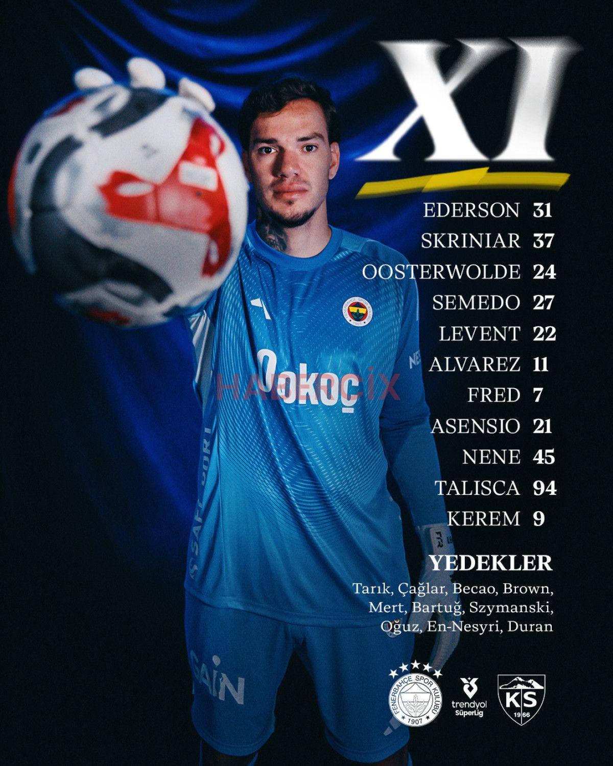 Fenerbahçe – Kayserispor maçının ilk 11’leri