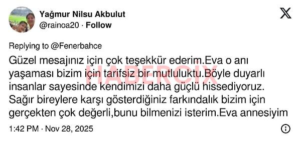 Eva’nın ailesi de bu ince davranış için kulübe teşekkür etti.