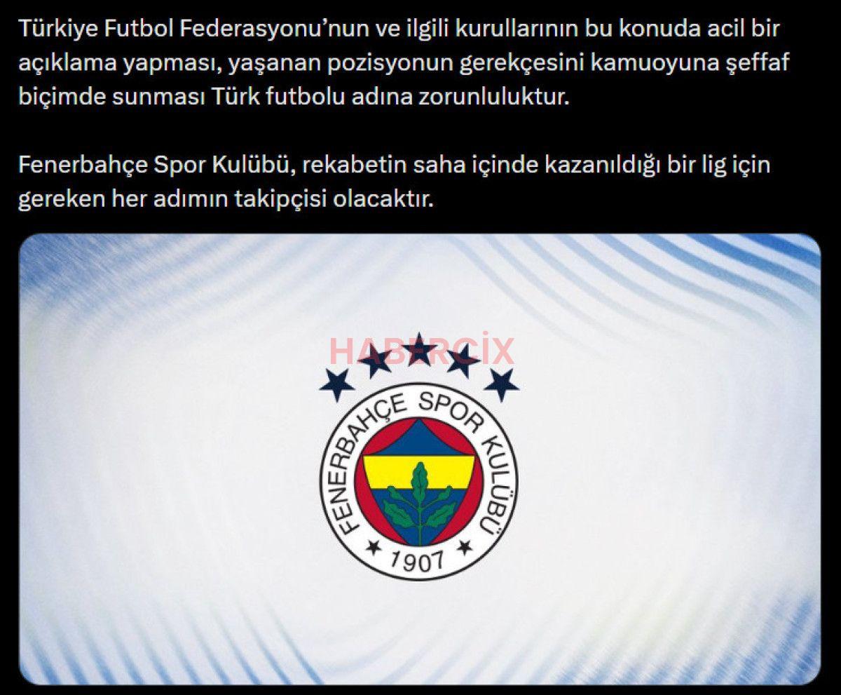 Saran’ın bu talebinin ardından Fenerbahçe Kulübü de sosyal medya hesaplarından maçın son dakikalarındaki tartışmalı pozisyonlarla ilgili açıklama geldi.