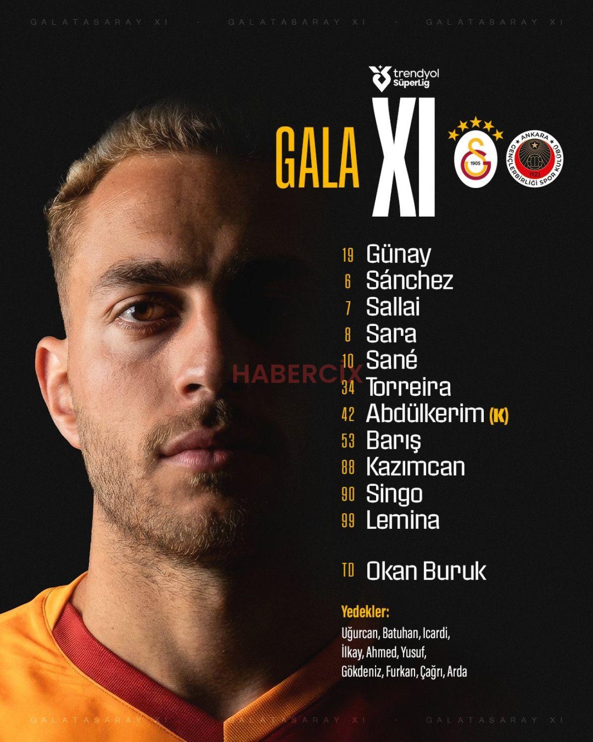 Galatasaray – Gençlerbirliği maçının ilk 11’leri
