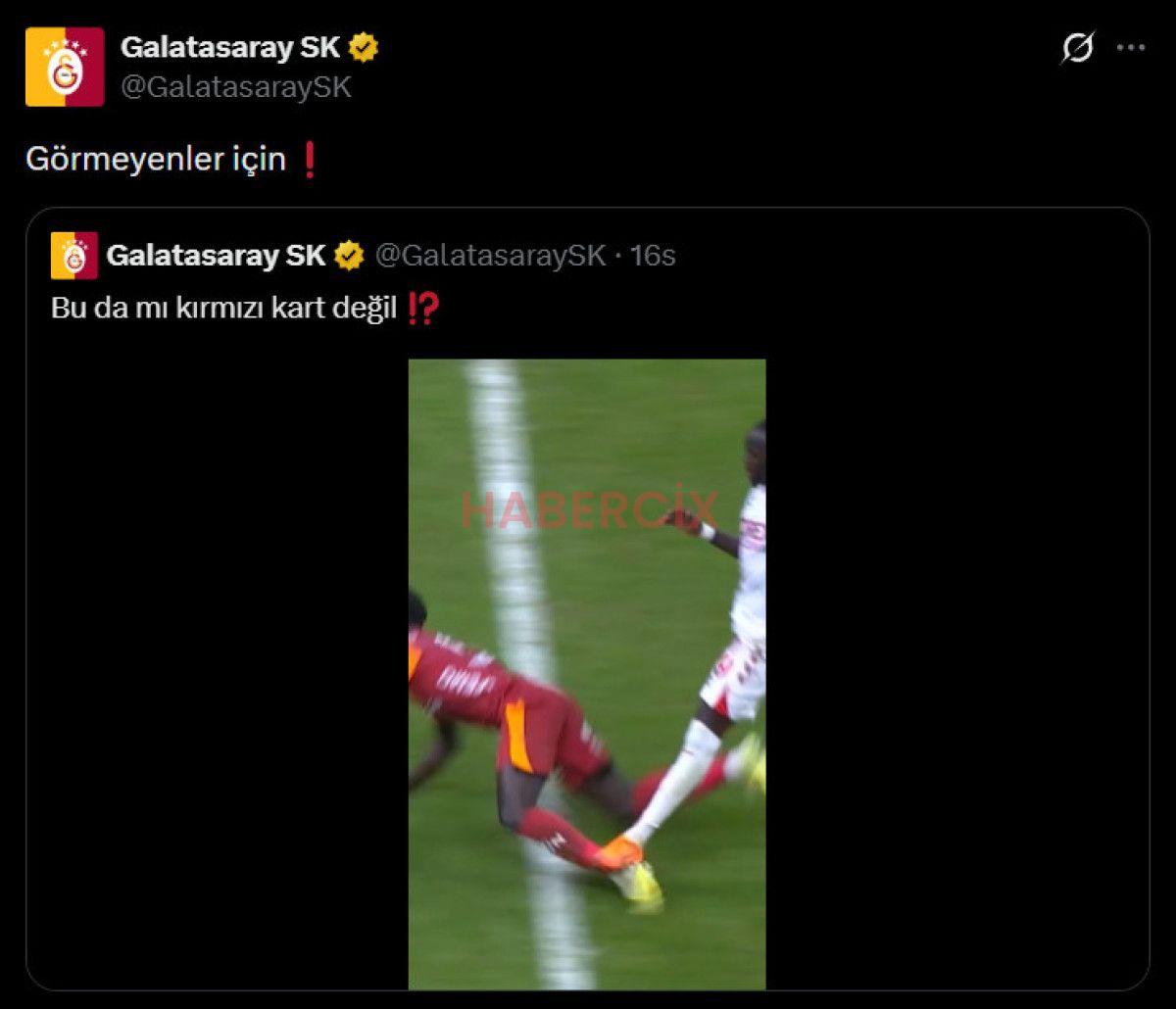 Galatasaray, kırmızı kart beklediği pozisyonu yeniden paylaştı