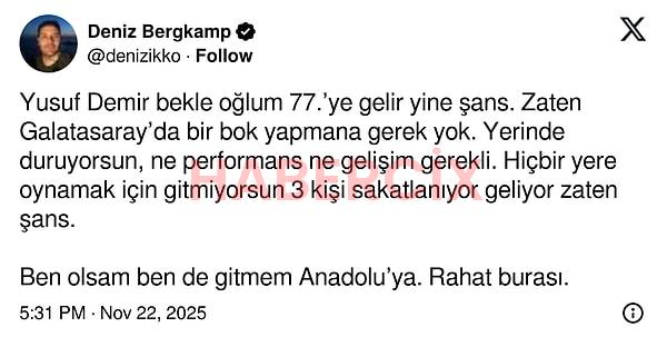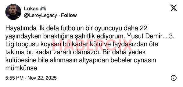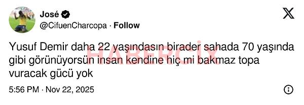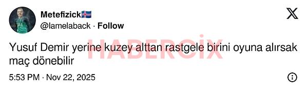 Ancak Yusuf, ikinci yarı başladığında oyundan alındı. Yusuf Demir’in performansı taraftarlardan ağır eleştiriler aldı.