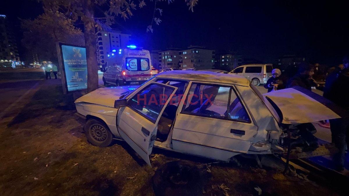Çarpmanın şiddetiyle denetimden çıkarak savrulan araba, bir ağaca çarparak durabildi.