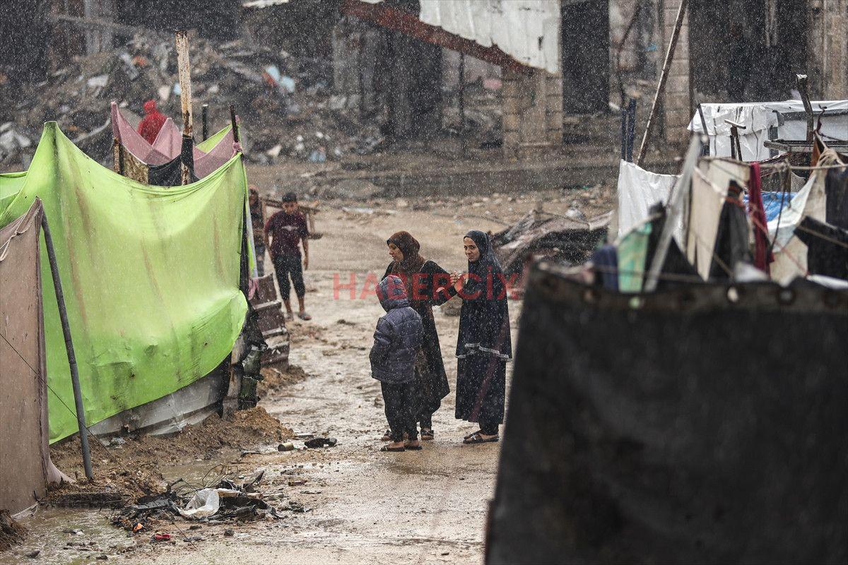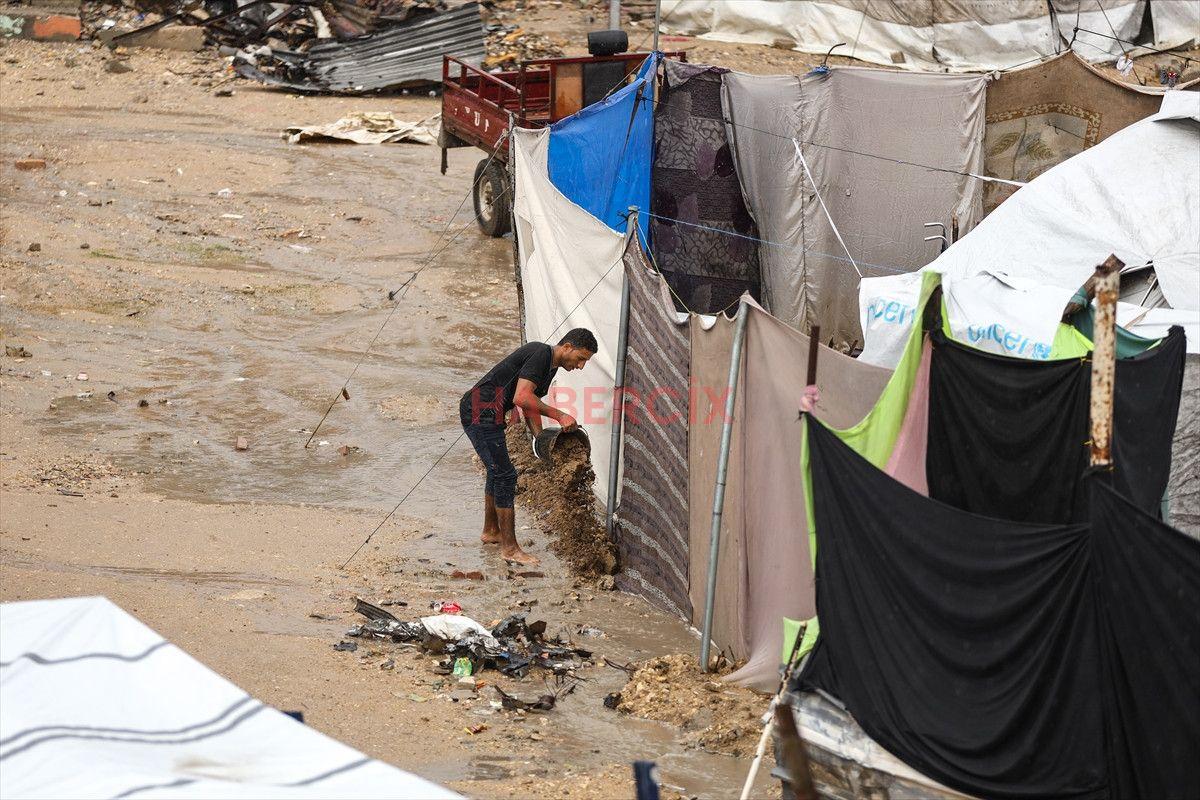 FİLİSTİNLİLER YAĞMUR ALTINDA HAYATTA KALMA MÜCADELESİ VERİYOR